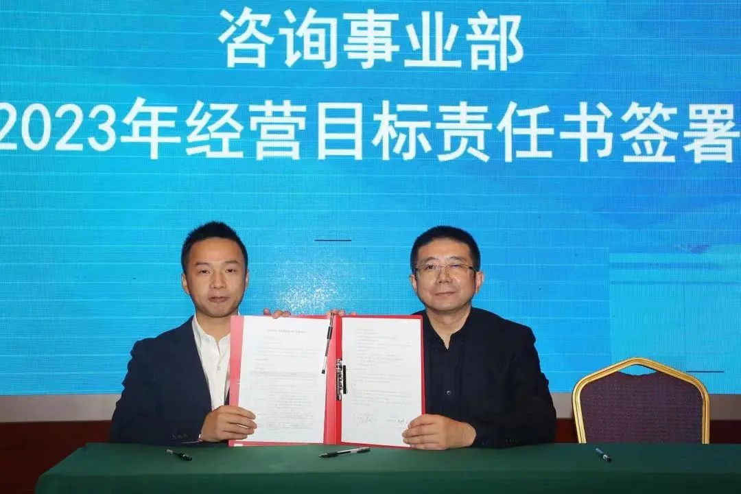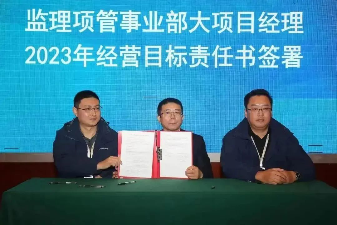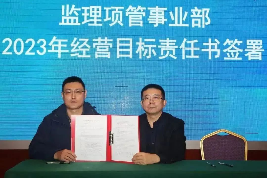 爲瞭更好地貫徹公司戰略,激勵各團隊上下同心、努力拼搏,圓滿完成各項經營指标,董事長與市場及各執業部門負責人、監(jiān)理項管事業部大項目經(jīng)理簽署《2023年度經營目标責任書》,現場氣氛莊重而熱烈。